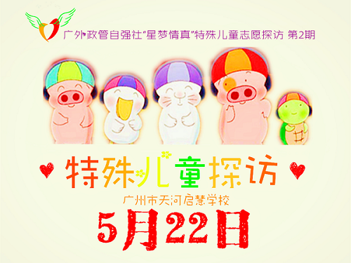 政管自强社第1期“星梦情真”特殊儿童常规探访志愿活动已在5月8日圆满结束,感谢各位志愿者的大力支持!第2期志愿探访活动将于5月22日(周四)开展,请留意我社短信通知并回复报名。报名截止时间为5月21日(周三)中午12时前,谢谢配合!