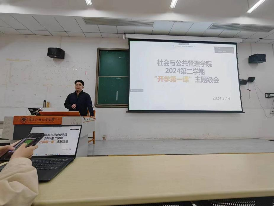 2024年春季学期伊始,为帮助同学们重返学习生活良好状态,2024年3月14日下午16:00-17:30,公管学院在C座507教室开展“开学第一课”主题级会,22-23级同学现场参加、20-21级同学线上参加了本次级会,级会由莫杰老师主持。