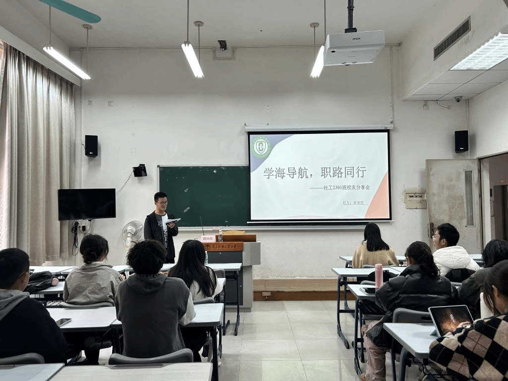 在春风和煦、桃花盛开的美好季节,公管学院社会工作专业的校友交流会顺利进行。本次分享会于2024年3月7日在教学楼C栋开展。活动旨在通过黄锦霞校友的经验分享,为在校大一学生提供职业发展的指导和灵感,同时也加强了校友之间的联系与交流。