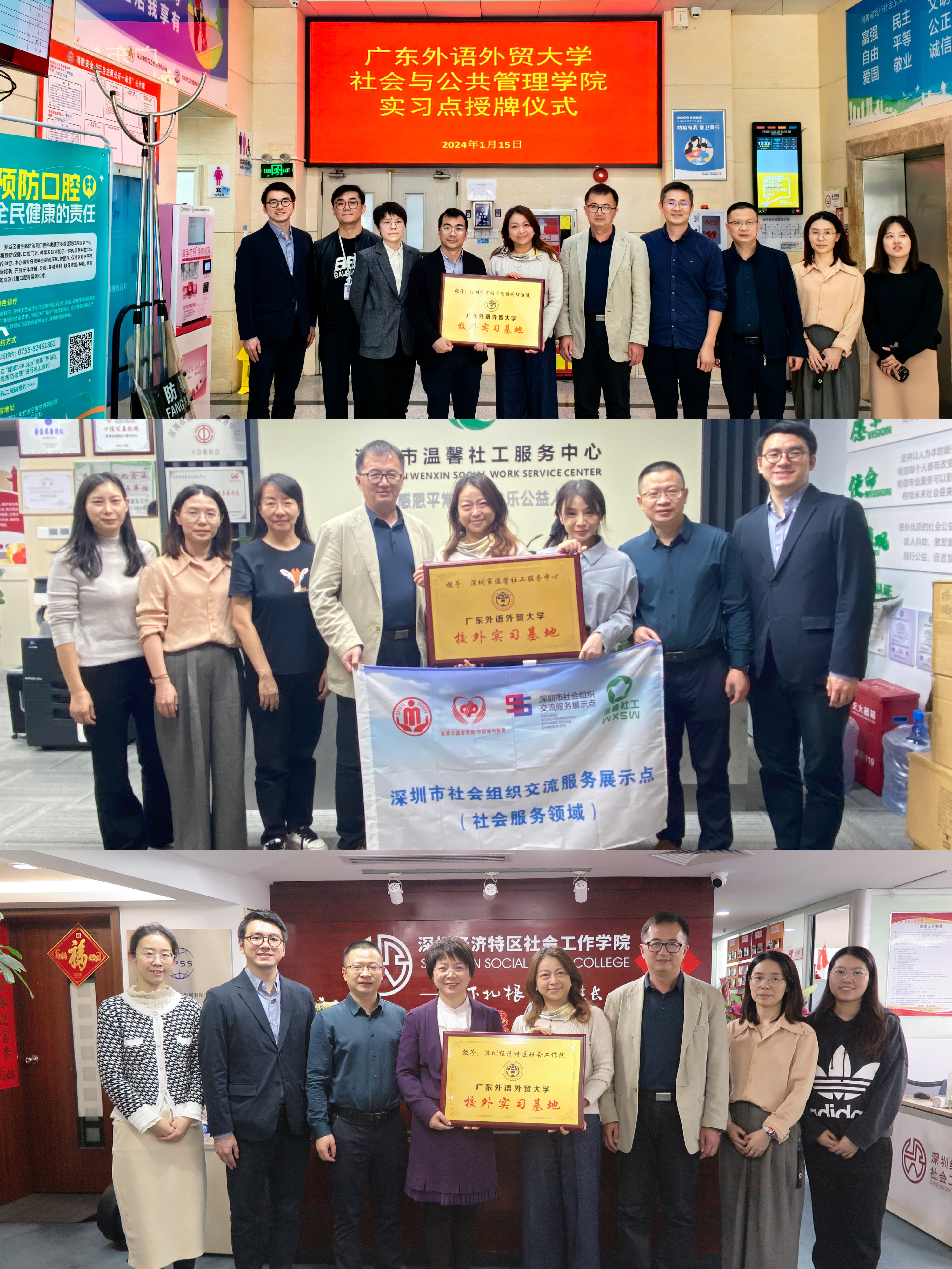 1月15日下午,公管学院一行连续走访深圳市罗湖区慢性病防治院、深圳市温馨社工服务中心和深圳经济特区社会工作院,与三家实习机构商定实习细则,并举行共建大学生校外实习基地授牌仪式。