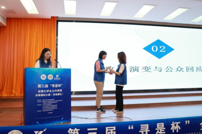 据了解,作为公共管理类学科学术竞赛之一,“寻是杯”全国大学生公共管理决策模拟大赛与传统案例大赛相比,在形式和内容上有了较大的突破与改变,由三部分构成:公共管理方案设计、公共管理决策演练沙盘对抗,以及现场团队答辩。本次大赛现场主要进行公共管理决策演练沙盘对抗和现场团队答辩两个环节。