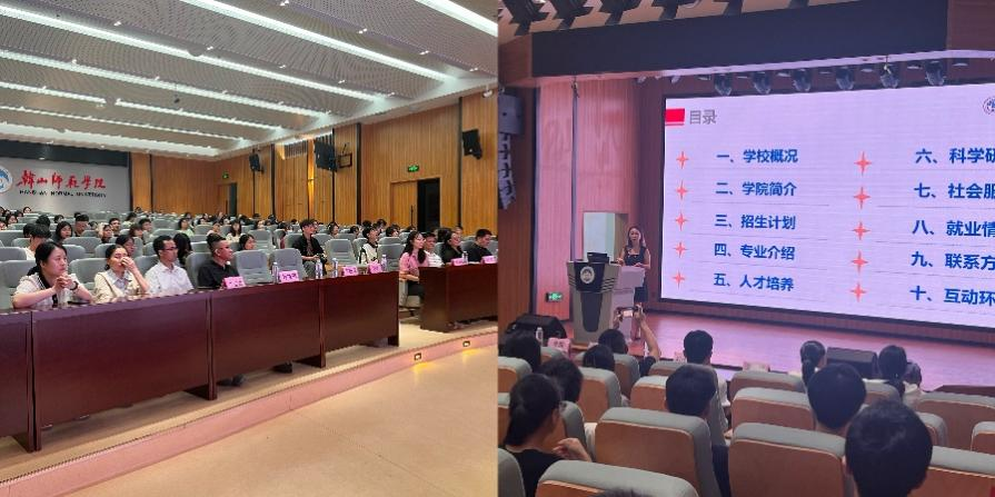 5月6日晚,韩山师范学院教科院副院长孙悦亮、刘茂军,以及副书记王运锋,政法学院副院长邓秀杰和相关专业教师与我院代表团进行了深入的交流,讨论了学科建设、人才培养和专业学位建设等方面的工作。在随后的宣讲会中,毕爽主任详尽地介绍了我院的五个硕士点,包括各专业的教学特色、学术研究方向及毕业生的就业情况。此次宣讲会吸引了来自心理学、社会工作和管理学等多个专业的学生参与。