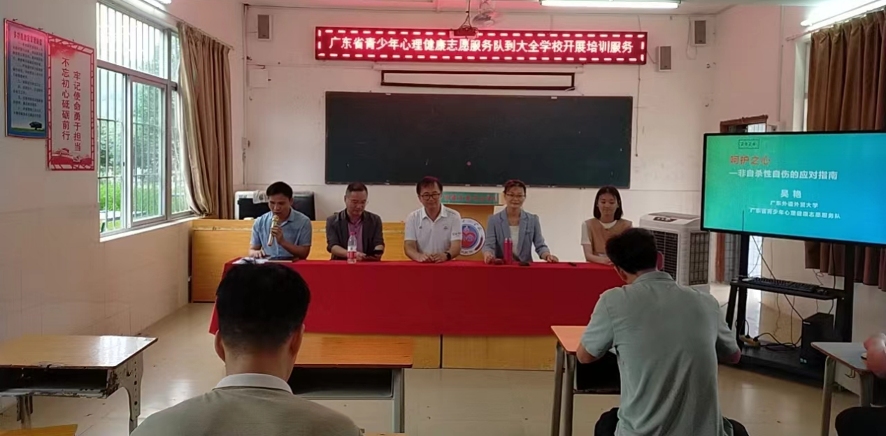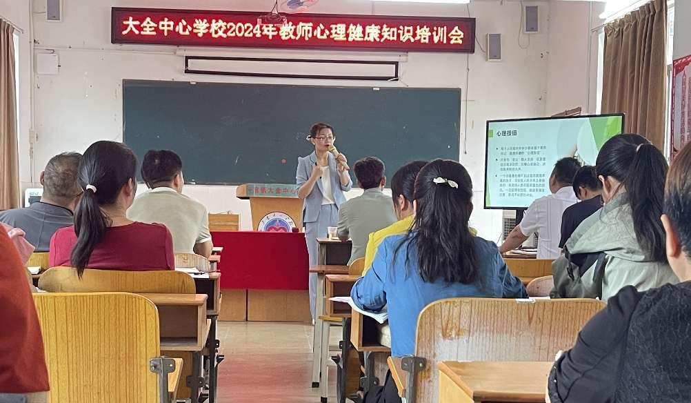 2024年5月10日下午,受郁南县干官镇大全中心学校邀请,广东外语外贸大学社会与公共管理学院应用心理学系教工党支部到校开展心理健康知识培训。社会与公共管理学院党委书记邵兵,双百行动工作对驻郁南负责人、广东工业大学物理学院胡正发教授参加本次活动,广东外语外贸大学应用心理学系吴艳教授主讲,郁南县干官镇大全中心学校全体教职工参加了培训。