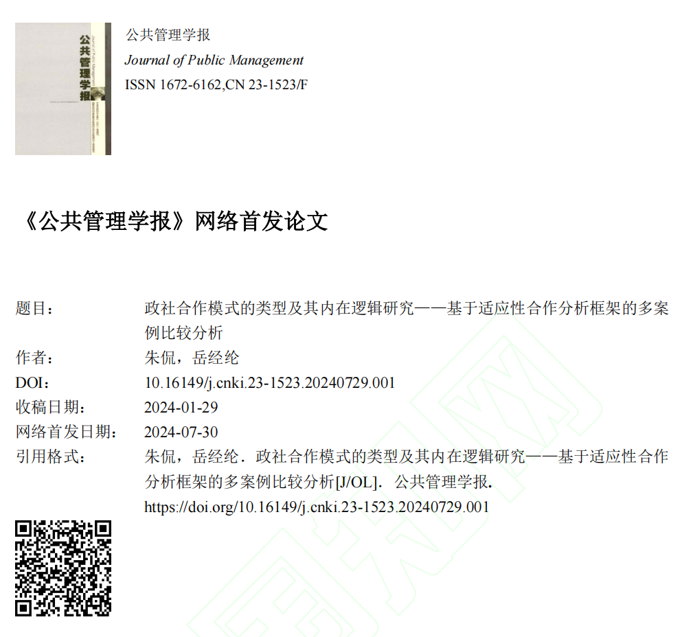论文题目:政社合作模式的类型及其内在逻辑研究——基于适应性合作分析框架的多案例比较分析
