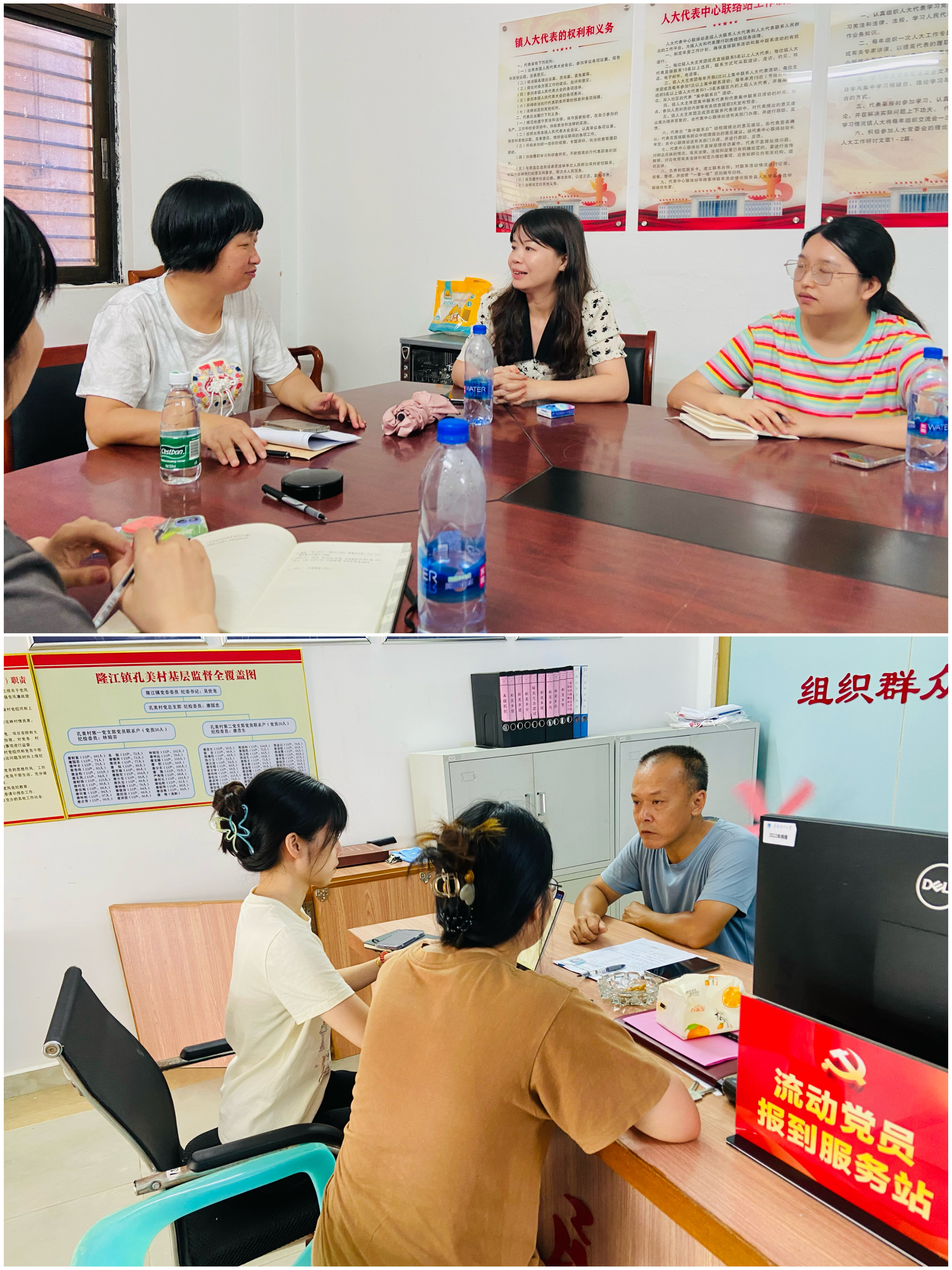通过与分管教育和文化的宣传统战委员黄莲萍和镇文化站唐站长的交流,了解到隆江镇公共文化服务多方面的基本情况,包括全镇中小学基础设施建设投入、中小学师生比及师资水平、留守儿童受教育程度、村书记到校座谈制度、村民理事会制度、文化站与农家书屋开放情况、公共体育设施建设、古村落保护与宗祠祭祀文化、非遗文创产品开发、以及隆江英歌和八音鼓特色等;通过与综治办副主任王洁荣访谈,了解了隆江镇综治办的组织架构和日常工作内容,并探讨了在信访处理机制、应急系统、乡村工作、法律支持、德治教育、网格化管理以及特殊人群管理等方面遇到的问题及提升工作成效的可能措施;通过与隆江镇司法所工作人员的访谈,了解到司法所在宣传普法、社区矫正与走访跟进、开设律师公益讲座、打击网络信息犯罪等方面的工作成效。