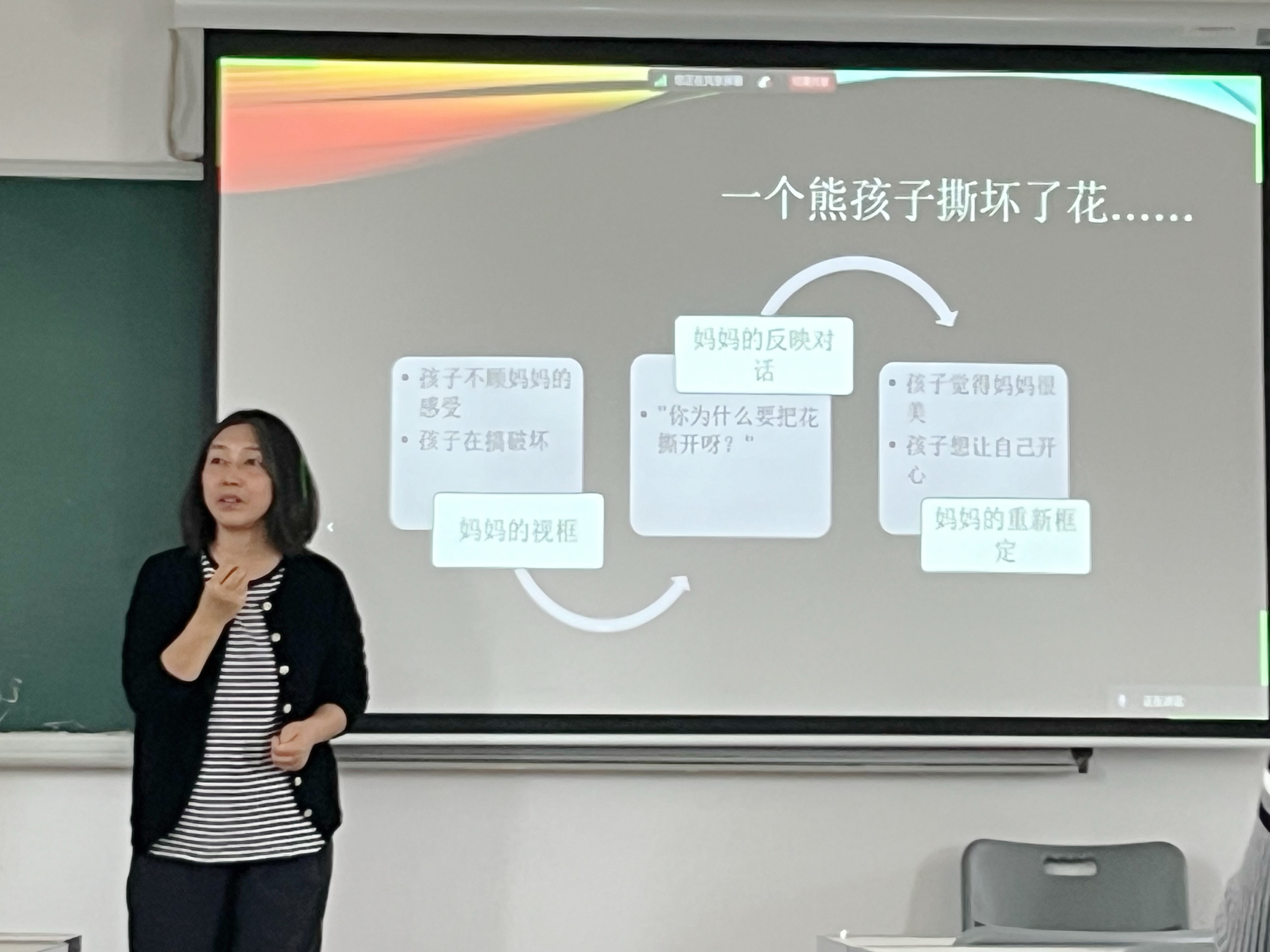 紧接着刘亚博士以自己所教授社会工作伦理课程的行动研究为例,说明教育实践中的“痛”如何作为教师行动的起点,将行动研究的讨论具体化。她以第一人称的视角,分享了自己对专业伦理教学的理解与思考,以及如何将这些思考转化成知识生产的过程。最后,刘亚博士建议,无论是在生活中还是社会工作行动场域中,都可以引用行动研究的范式,在行动中反思,在反思中行动,推动实践的改善。