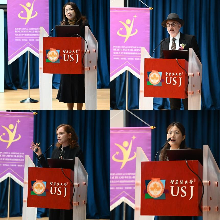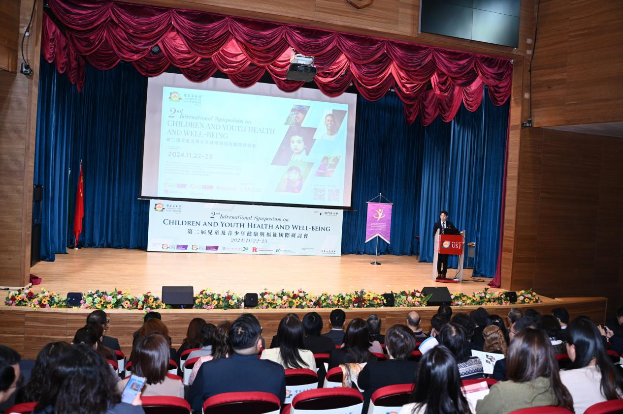 由圣若瑟大学健康科学学院、圣若瑟大学澳门社会发展观察中心、罗格斯大学社会工作学院、澳门镜湖护理学院和公管学院联合举办的“第二届儿童及青少年健康福祉国际研讨会”于2024年11月22日至23日在澳门圣若瑟大学举行,來自两岸四地及欧美的专家学者、政府部门代表、实务工作者、学生约300人参加此次研讨会。中央人民政府驻澳门特别行政区联络办公室教育与青年工作部高校处四级主任科员褚志文,澳门特别行政区社会工作局代表杨嘉欣,澳门特别行政区卫生局代表郭伟德,澳门特别行政区教育及青年发展局代表欧阳展达,天主教澳门教区主教李斌生,圣若瑟大学副校长农韵淇,圣若瑟大学健康科学学院院长暨澳门社会发展观察中心总监何钟建,罗格斯大学社会工作学院院长George S. Leibowitz,澳门镜湖护理学院副院长梁淑敏,我院院长涂斌、党委书记邵兵、副院长张信勇、副院长陈胜、广东省社会组织研究中心主任彭未名参加开幕式。