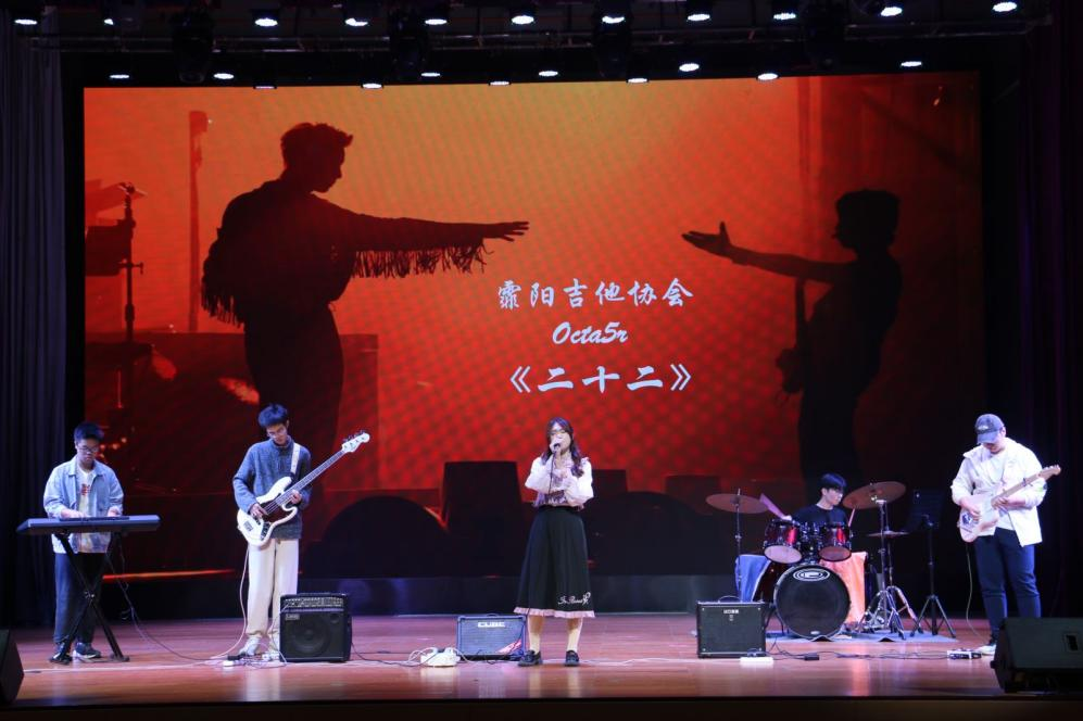 文艺汇演在霏阳吉他协会带来的一首《二十二》中拉开序幕,轻快的小调于富有韵律的节拍中将现场拉入了音乐的抒情世界。在主持人的宣布下,文艺汇演正式拉开了帷幕。