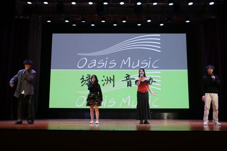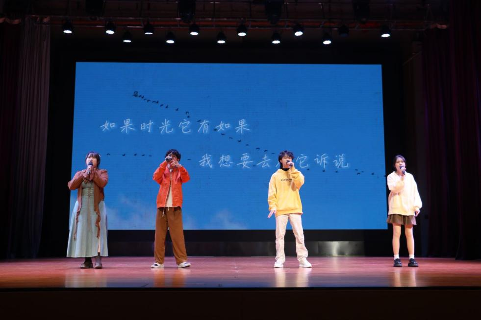 24级应用心理学专硕班人声大合唱《夜空中最亮的星》,纯粹的歌声引得观众情不自禁开口跟唱。绿洲音乐协会以阿卡贝拉纯人声伴奏的形式带来一曲《come along》,带领观众去发现属于音乐的美妙趣味。