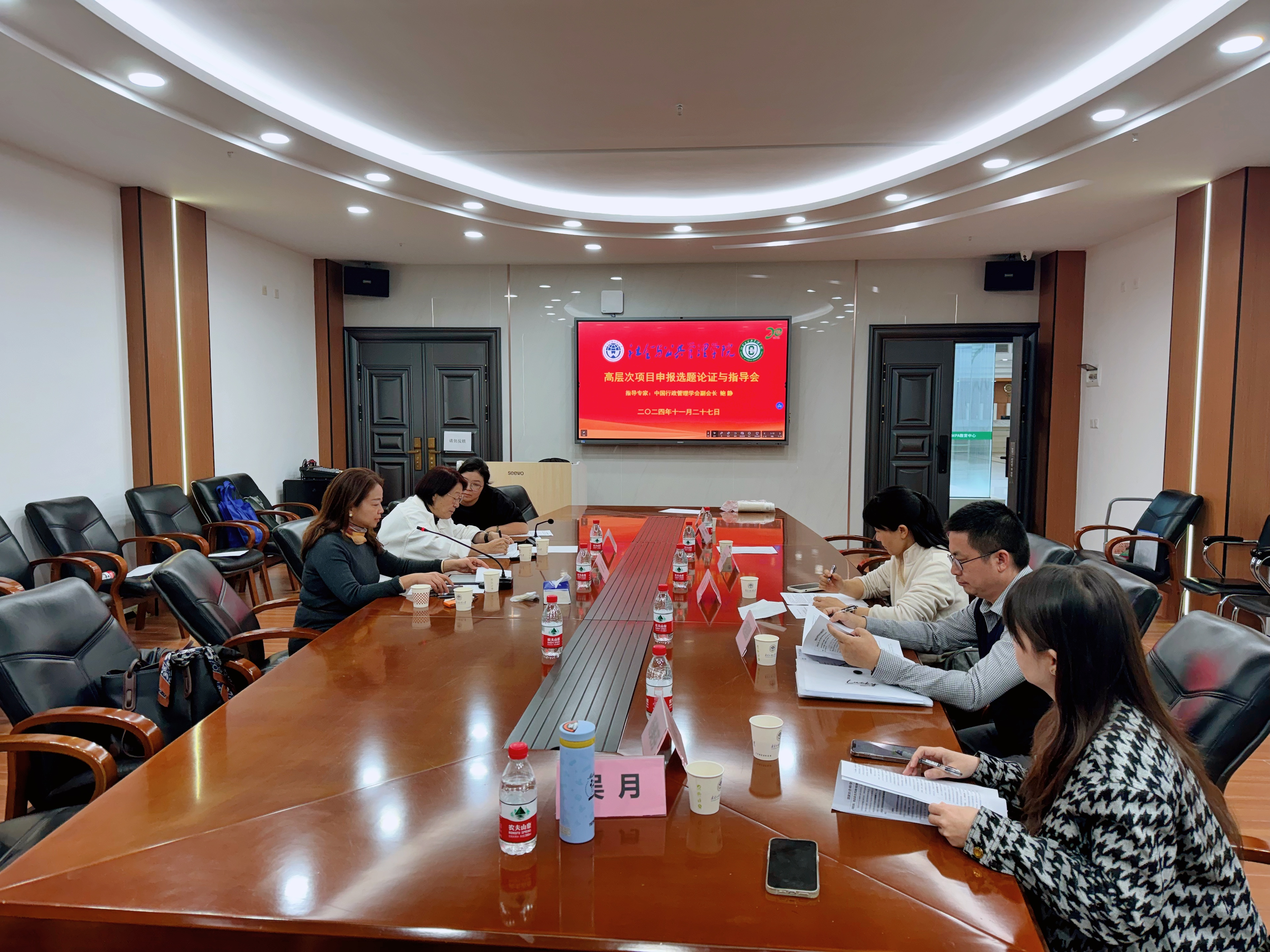 为进一步推进学院2025年度高层次项目申报论证与指导工作,提高各位老师项目申报质量,11月27日下午,公管学院在大学城校区MPA第二会议室召开2025年度高层次项目申报论证与指导会。本次指导会特邀中国行政管理学会第八届理事会副会长鲍静研究员与会指导,学院高层次项目申报老师参会。会议由涂斌院长主持。