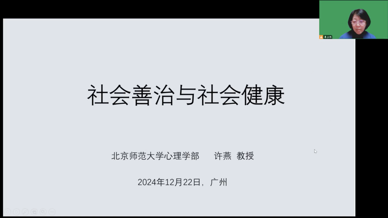 北京师范大学许燕教授以《社会善治与社会健康》为题作分享,深入探讨了当今时代的特征与心理健康的关系,强调在AI时代,创新技术是社会变革的核心推动力,并呼吁通过社会善治促进心理健康,推动实现“健康中国”与“平安中国”的目标。