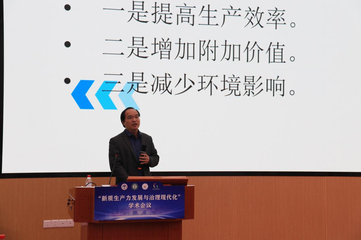 广东外语外贸大学彭未名教授作题为《以新质生产力和高质量发展推进中国式现代化》的主题报告。他从“推进中国式现代化的‘四新’向度”“教育、科技、人才一体化支撑新质生产力发展”和“制度建设推进全面深化改革和中国式现代化”三个纬度分析如何以新质生产力和高质量发展推进中国式现代化。