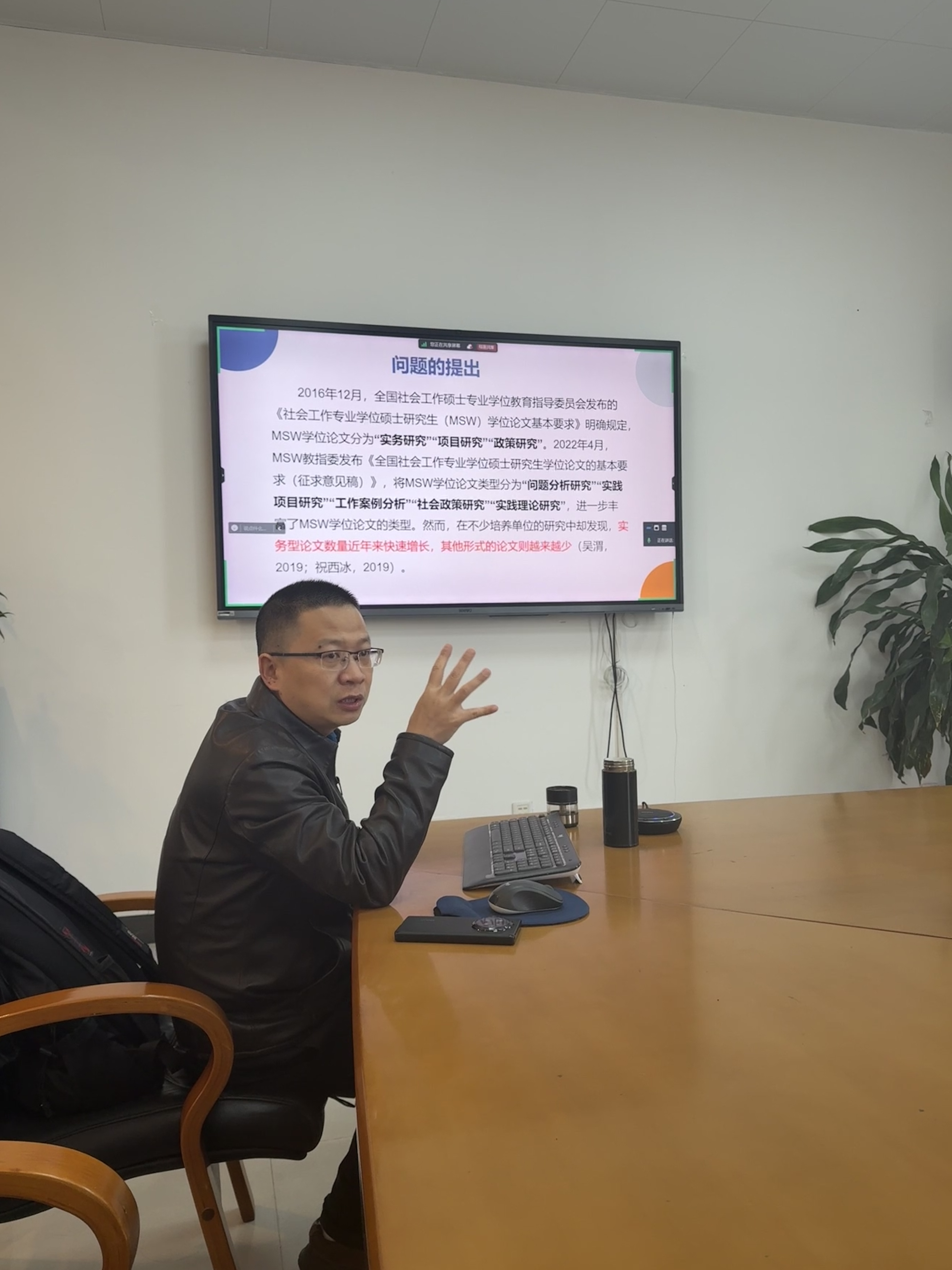 在互动环节,与会师生踊跃提问,围绕论文写作中的选题困惑、研究方法的选择以及如何平衡理论研究与实践探讨等问题展开了热烈讨论。一位老师提问:“如何在非实务型论文中体现社会工作的学科特点?”对此,陈胜副教授结合MSW教指委的新要求,指出应该从论文结论部分为社会工作实务提出详细建议,这样同样可以体现社会工作的学科特点,减少盲审不通过的风险。