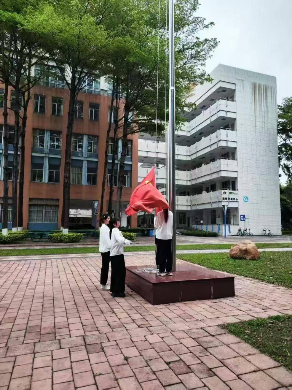 为进一步加强爱国主义教育,培育学子爱国情操。2025年3月31日,我院于大学城校区教学楼中庭和行政楼举行升旗仪式,共计8名旗手负责本次活动。学院辅导员黄浩,60余名学生代表出席本次仪式,现场由申佳炎同学主持。