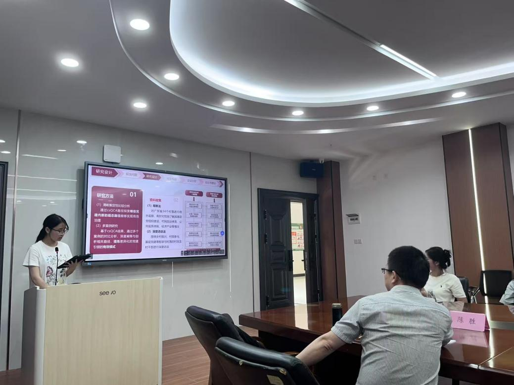 两支队伍依次上台,分别从项目背景、研究设计、构建模型、实证分析、结论建议等方面对项目进行了详细展示。项目涵盖了乡村治理、党建引领、文化建设等多方面,充分展现了公管学子的创新思维和实践能力。