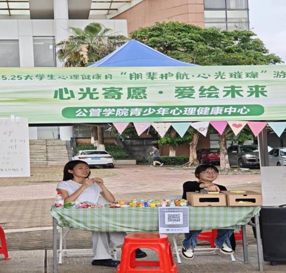 5月25日全国大学生心理健康日之际,5 月 22 日下午2点至 7点由广外心理健康教育与咨询中心主办,公管学院青少年心理健康志愿服务中心参与的“朋辈护航·心光璀璨”主题心理游园会在图书馆广场圆满落幕。本次活动历时5小时,通过艺术疗愈、朋辈互动与公益实践相结合的形式,打造了一场沉浸式心理健康教育盛宴,募集善款将捐赠至韶关乳源留守儿童心理关爱项目。