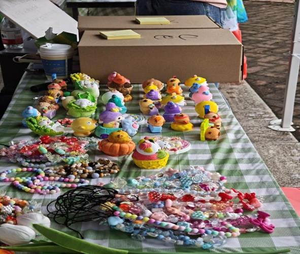 公益市集区热闹非凡。阳光友缘摊以创新形式打破社交界限,开启友谊新旅程。石膏娃娃摊位同样备受青睐,造型多样的成品石膏娃娃色彩鲜艳、形象生动。本次公益市集区收益的 50% 将捐赠给韶关乳源留守儿童群体,为他们的健康成长添砖加瓦。