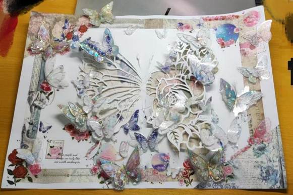 成果展示区精彩纷呈,串珠手机链、照片墙、纸雕等作品琳琅满目。工作人员精心制作的 “勇气之链”“友谊之环”“希望之珠” 主题串珠手机链,传递着积极心理暗示;照片墙记录过往活动成果与成员感悟,见证心理健康新征程;纸雕作品则呈现创作者从焦虑到专注的心路历程。这些成果吸引众多同学驻足欣赏,通过互动讲解,有效提升了心理健康关注度与活动影响力。