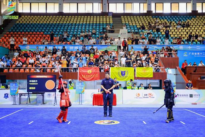 2025年5月19日至21日,广东省第十二届大学生运动会武术长短 兵比赛在暨南大学(石牌校区)邵逸夫体育馆盛大举行。本次赛事由广东省教育厅、广东省体育局联合主办,广东省学生体育艺术联合会协办,汇聚了全省32支高校代表队,竞争异常激烈。广东外语外贸大学社会与公共管理学院的学子们在赛场上奋力拼搏,为校争光,取得了令人瞩目的成绩。