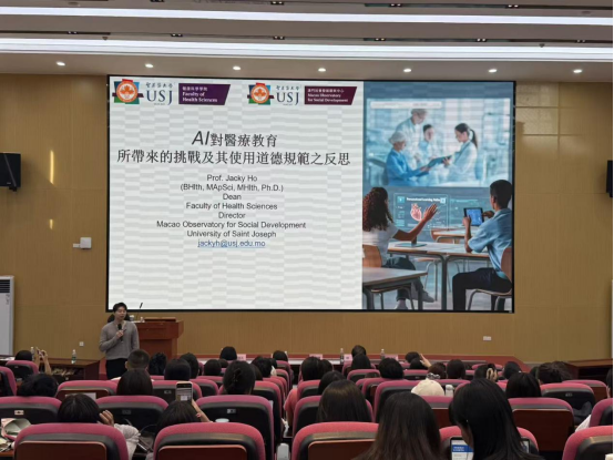 本网讯 10月13日,澳门圣若瑟大学健康科学学院院长何钟建应邀为学院师生做以“AI对医疗教育所带来的挑战及其使用道德规范之反思”为题的讲座。学院党委书记邵兵、副书记刘丽玉、院长助理兼行政管理系主任杨美芬以及学生代表约150人参加讲座。讲座由学院院长涂斌主持。
