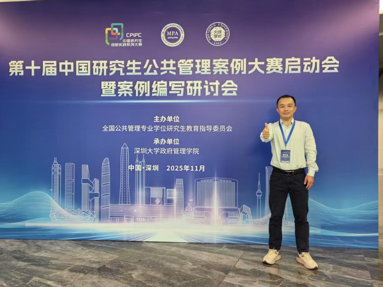 本网讯 11月14日至17日,由全国公共管理专业学位研究生教育指导委员会(以下简称MPA教指委)主办,深圳大学政府管理学院承办的“第十届中国研究生公共管理案例大赛启动会暨案例编写研讨会”在深圳市顺利举办。我院副院长费久浩,MPA教育中心主任林海彬参加会议。