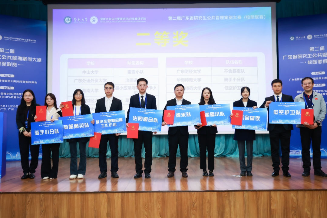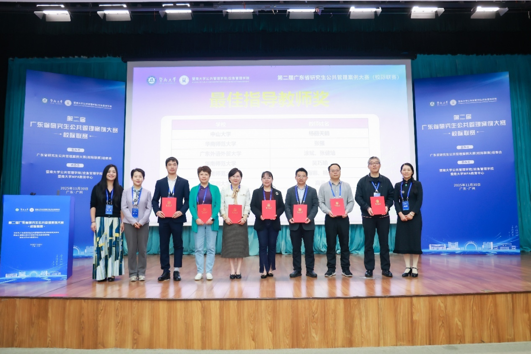 本网讯 2025年11月30日,第二届广东省研究生公共管理案例大赛(校际联赛)决赛在暨南大学石牌校区成功举办。本次大赛吸引了146支队伍报名,收到了146份高质量文本案例。大赛分为初赛和决赛两个环节,初赛采取文本匿名评审形式,最终有18支队伍脱颖而出,成功晋级决赛。
