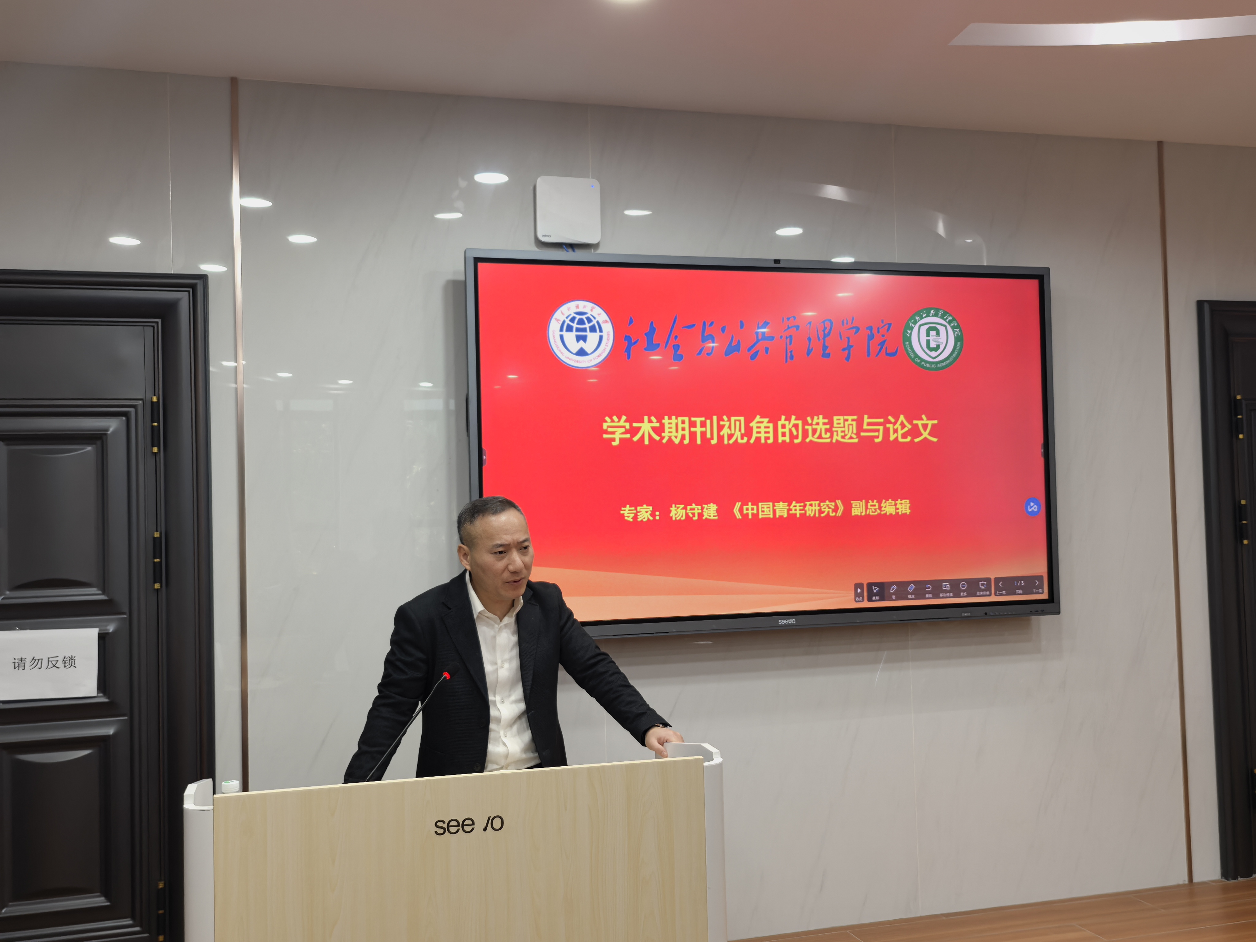 本网讯 11月22日,中国青少年研究中心学术期刊部主任、《中国青年研究》副总编辑杨守建老师应邀来我院开展题为“学术期刊视角的选题与论文”的学术讲座。学院陈胜副院长、院长助理兼行政管理系主任杨美芬老师、王达梅老师、刘丽虹老师、林海彬老师、吴晓涵老师、朱侃老师以及在校研究生参加了本次讲座。