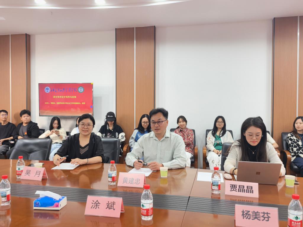 本网讯 12月11日,美国罗格斯大学社会工作学院副院长、知名学者黄建忠教授应邀来我院开展题为“英文学术论文写作与发表”的学术讲座。讲座由我院涂斌院长主持,陈胜副院长、院长助理兼行政管理系主任杨美芬老师、刘丽虹老师、吴月老师、贾晶晶老师以及在校研究生参加了本次讲座。