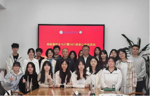 本网讯 为深入了解联系班级学生的学习生活情况,精准把握学生成长需求,切实为学生成长成才保驾护航,12月30日,校党委常委、副校长杨励教授来到公管学院,与所联系的行管2401班全体同学开展面对面谈心谈话活动。公管学院党委书记邵兵、副书记刘丽玉、行管系主任杨美芬、辅导员黄浩、李佳宁陪同参与,活动氛围温馨而热烈。