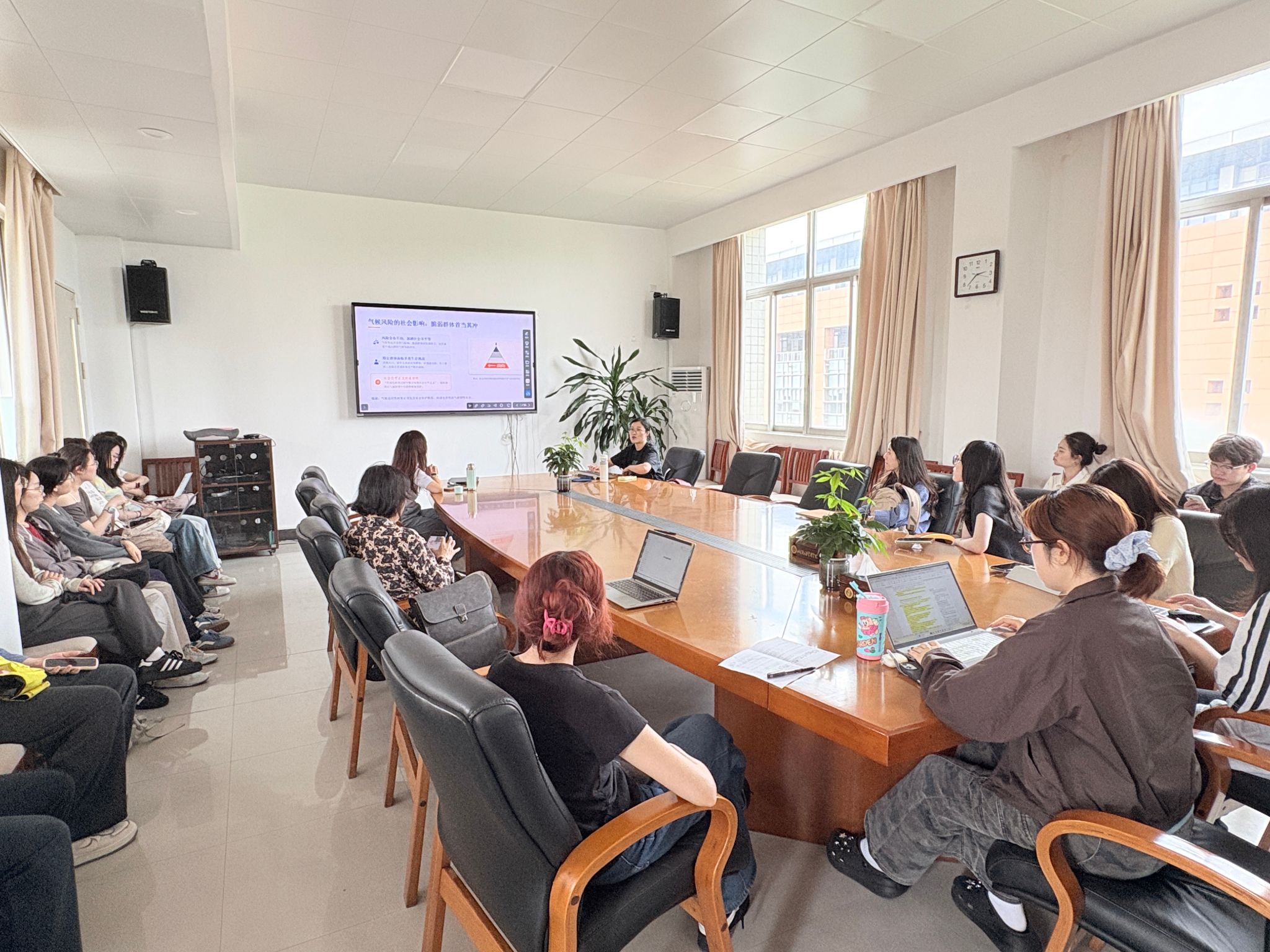 刘丽虹教授结合自身研究背景展开交流。她指出,气候问题看似是自然现象,实则与社会公平、个体脆弱性深度关联,这项研究清晰揭示了不同群体受气候风险影响的差异性,为公共管理、心理学等学科提供了新的研究思路;同时鼓励同学们发挥专业优势,积极开展跨学科探索,用好定量研究方法。