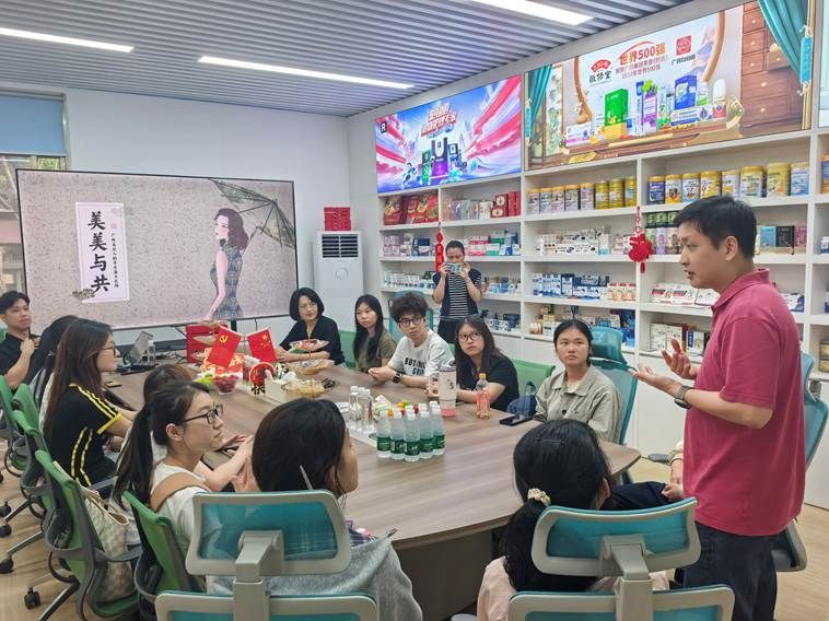 交流过程中,李邑宏校友深情回顾了自己在母校的求学时光,分享了从校园走向社会、自主创业的艰辛历程与宝贵经验,详细介绍了广州金葵大健康科技有限公司的发展定位、运营模式及研发生产情况。随后,他带领师生们实地参观了企业研发实验室、生产车间等核心区域,耐心讲解产品研发流程、质量管控标准,让同学们近距离接触大健康产业的前沿动态,直观了解行业发展现状与人才需求方向。