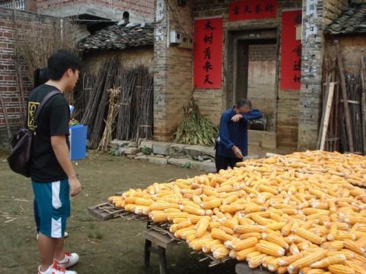 你光着脚丫,驼着弯背,在金黄的玉米堆前,告诉我们不放弃