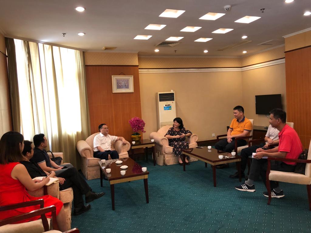 2018年7月22日上午,广东外语外贸大学校长石佑启,校团委书记苏奕,社会与公共学院党委书记高云坚,社会与公共管理学院院长彭未名,校团委社会实践部部长刘茹楠,社会与公共管理学院团委书记房瑞佳一行抵达英德市,与英德市副市长吴秋凤,英德市委市府办副主任张志彬和英德市教育局副局长梁振列举行座谈会,会议就广东外语外贸大学与英德市建立校地更高层次,更加深入合作等议题进行讨论,为下一步做好顶层设计进行初步意向达成。
