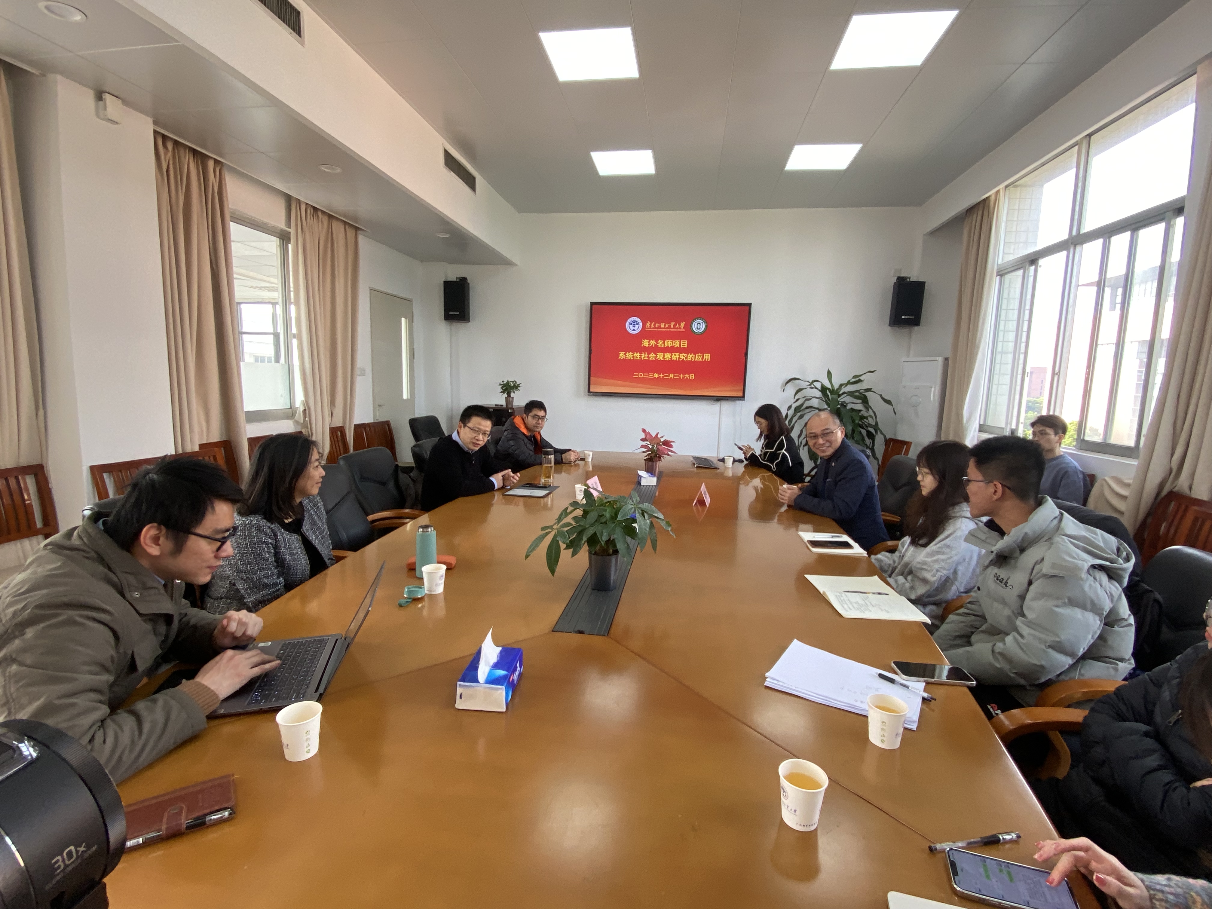 本网讯 2023年12月26日,由国际交流合作部(港澳台事务工作部)支持,我院主办的2023年度广东外语外贸大学海外名师讲学项目“底层田野调查与成果发表”系列讲座在大学城校区开讲。澳门大学社会科学学院徐建华教授应邀为我校师生开讲,我院院长涂斌、研究生教育中心主任兼MSW教育中心主任徐盈艳、行政管理系主任杨美芬、MPA教育中心主任林海彬等教师代表以及部分硕士研究生共60余人参加了系列讲座。讲座由我院副院长陈胜主持。
