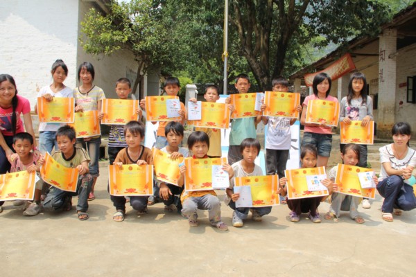 经过一个多小时的激烈竞争,选手们演唱完毕。评委们回到了办公室就选手们的临场发挥进行合议,大家各抒己见,你一言我一句,讨论正酣。毕竟每个评委侧重点和欣赏类型有所不同,因此大家要学会妥协和商议以得出最公平公正公开的赛果。一番认真争论后,从整体台风稳健性,现场感染力,表演自信度等方面考量,评委们达成了共识。本次比赛共设置一、二、三等奖和优秀奖若干,奖品有文具、象棋、水壶等生活实用品。看,无论是得到一等奖还是优秀奖的小孩,都笑得那么灿烂,“比赛第二,友谊第一”的种子已在孩子们的心里播种发芽慢慢生长。至此,活动圆满落幕。