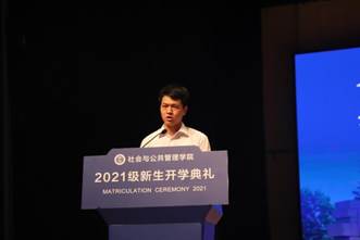 最后,2021级研究生新生代表邹灿基发表讲话。他表示作为新一代社会青年,每个人都应该怀揣心中的强国梦,为建设祖国的未来不懈努力,明确责任,立志怀梦。此外,作为新时代的学生,大家要树立奉献祖国的远大志向,心怀社会,将个人成长与国家繁荣社会进步紧密的结合起来,明确目标,勇敢追梦。最后,他建议同学们要结合自身实际选择一个正确的方向,认真钻研,并用高标准来严格要求自己。