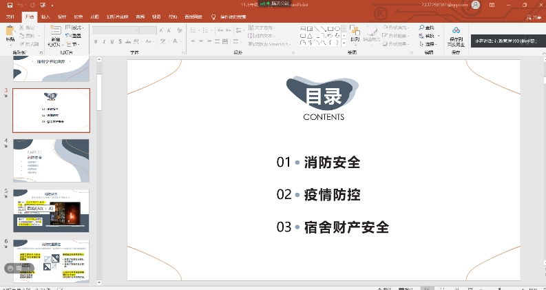 随后,19、20级级委陈子豪、谢凝睿、张璇同学分别围绕“消防安全”、“疫情防控”、“宿舍财产安全”三大板块对同学们进行了详细的安全知识宣传普及。