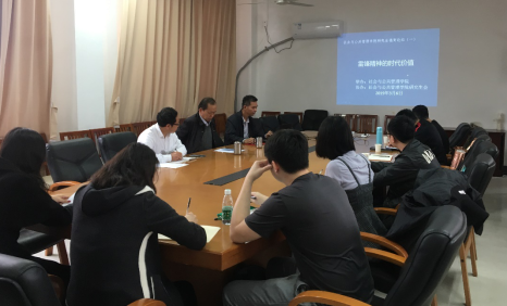 2019年3月6日下午,社会与公共管理学院在学院会议室举办了主题为“雷锋精神的时代价值”的研究生德育论坛,出席本次论坛的有学院党委书记高云坚、办公室主任施可明、教务秘书干亚平以及2017级、2018级全体研究生。高云坚书记主持会议。