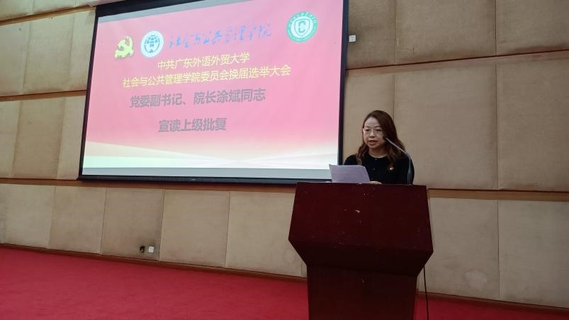 学院党委副书记、院长涂斌同志宣读校党委《关于社会与公共管理学院党委换届候选人的批复》和宣读社会与公共管理学院新一届党委委员候选人简介。