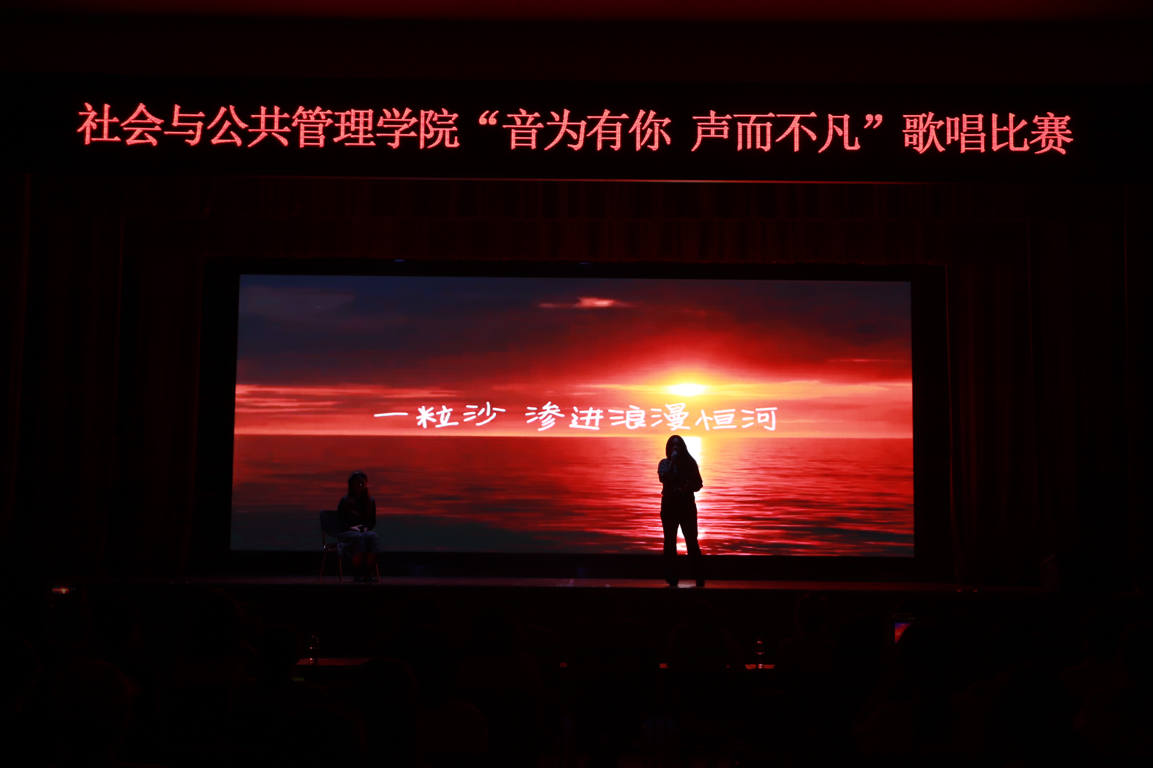 2023年11月8日19:00公管学院于大学城校区学生活动中心二楼举办2023年第十四届Super Voice歌唱比赛决赛。决赛邀请了经贸学院黄星老师、法学院陈雪桃老师和公管学院的莫杰老师担任教师组评委,由潘滢和孙涵琪同学担任学生组评委。活动中师生齐聚一堂,共同见证了这场精彩的赛事。比赛吸引了来自各班才华横溢的学生,以及众多音乐爱好者的关注。