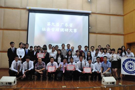 2015年5月25日晚,第九届广东社会管理调研大赛决赛在广东外语外贸大学图书馆报告厅隆重举行,从广东外语外贸大学、华南师范大学、深圳大学等高校110支队伍中脱颖而出的10支队伍相聚一决高下。