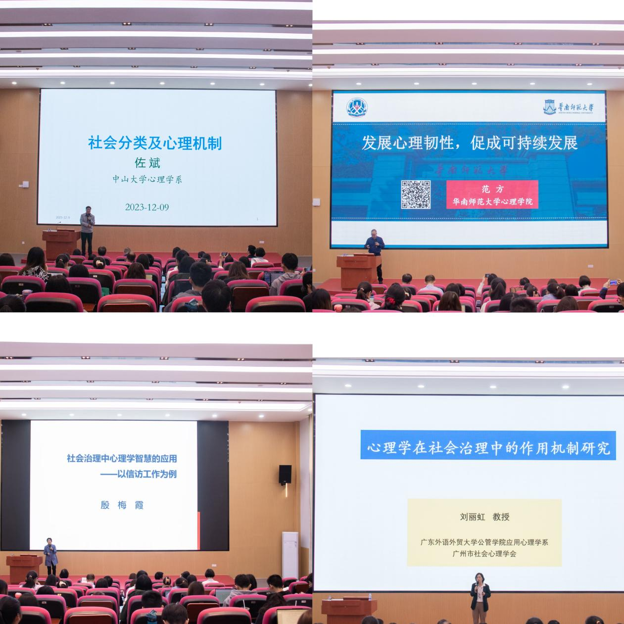 在主题报告环节,中国社会心理学会会长(中山大学)佐斌教授、华南师范大学范方教授、广东警官学院殷梅霞教授和广东外语外贸大学刘丽虹教授分别作了“社会分类的心理机制”、“培养心理韧性,促成可持续发展”、“社会治理中心理学智慧的运用——以信访工作为例”和“心理学在社会治理现代化中的作用机制研究”主题报告。主题报告由广东外语外贸大学社会与公共管理学院副院长张信勇教授主持。