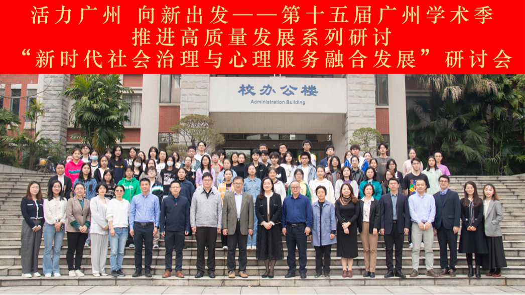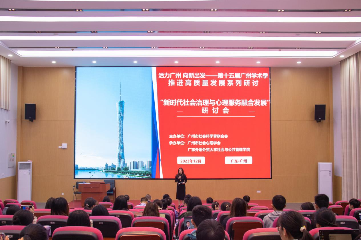 本网讯 2023年12月9日,由广州市社会科学界联合会主办,广州市社会心理学会和广东外语外贸大学社会与公共管理学院联合承办的“活力广州 向新出发——第十五届广州学术季推进高质量发展系列研讨”之“新时代社会治理与心理服务融合发展”研讨会在我校大学城校区举办。来自中山大学、华南师范大学、广东外语外贸大学、广东警官学院、广州市社会科学界联合会、广州市社会心理学会、广州市越秀区社区精神康复综合服务中心、广州市番禺区正阳社会工作服务中心、广州茂华元道教育信息咨询有限公司等省内高校、政府部门、社会组织和企事业单位的专家学者与会。