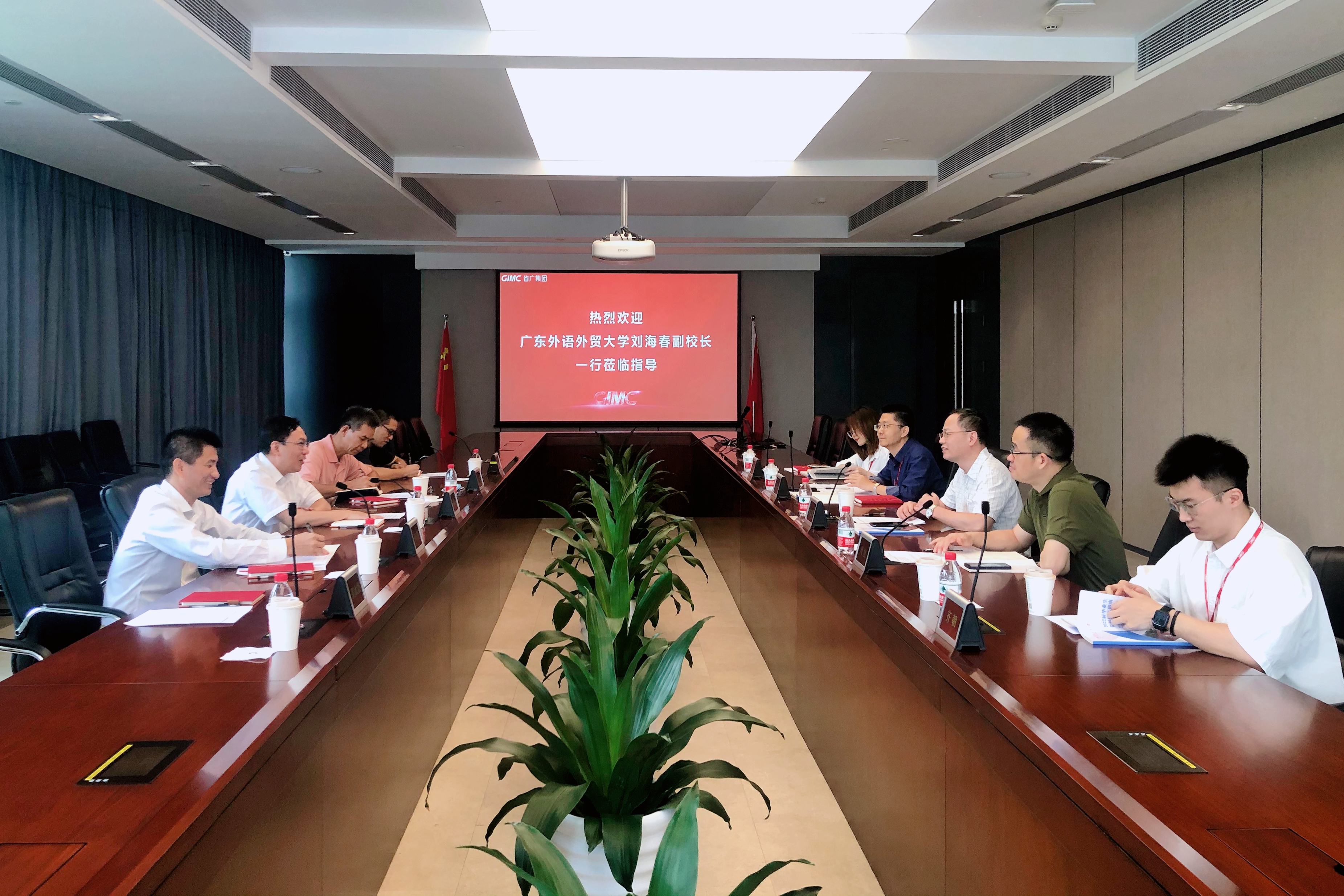 随后,刘海春一行前往广东省广告集团股份有限公司,集团党委副书记、纪委书记姚文骏、首席财务官周旭、人力资源部部长林春华等接待了刘海春一行。座谈会上,姚文骏阐述了集团的发展历程、业务板块和前景规划。林春华介绍了广外多届优秀校友在省广集团的发展现状,并对当前集团所需的行业人才进行说明。广外校友周旭表示自己对母校常怀感恩之心,多年来一直关心并以实际行动为广外的同学们提供实习、就业机会,希望能尽一份绵薄之力。刘海春简要介绍了广外专业设置、人才培养等情况,邀请省广集团到广外校园开展专场招聘会,共同搭建就业平台、拓宽招聘渠道。会上,双方约定共建实习基地,期待未来进一步拓宽学生实习渠道,前置学生生涯规划,完善人才培养路径。