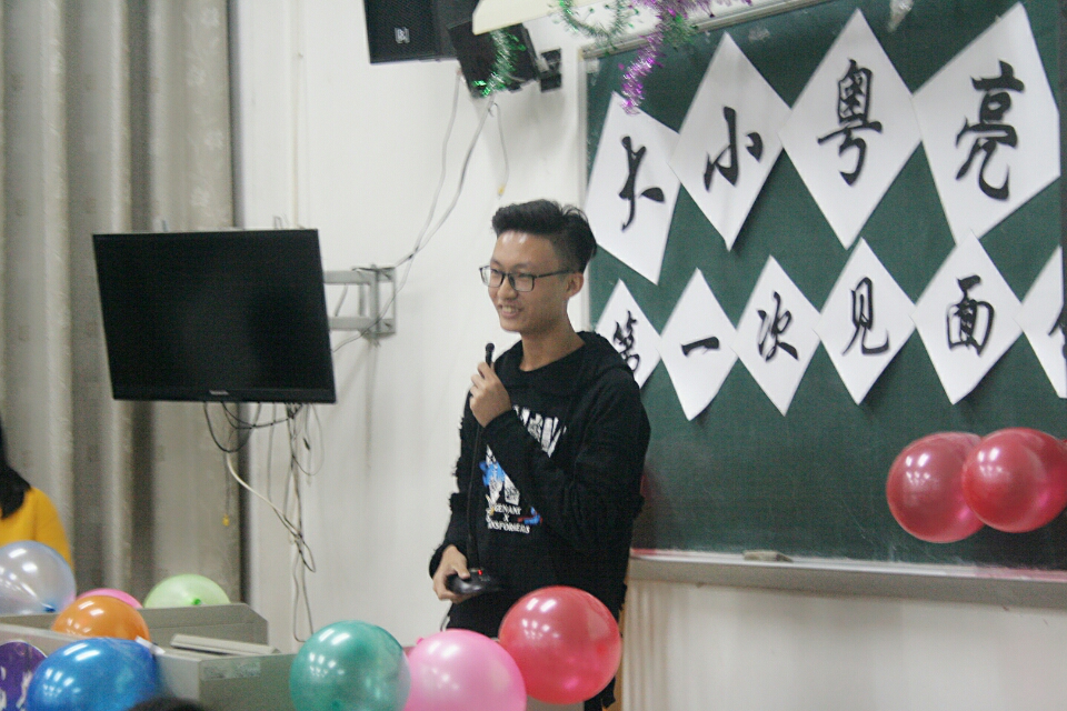 首先,本次见面会的主持人用粤语为在场的同学讲述了粤语的发展史,还观看了关于粤语发音技巧的视频,让小粤亮们对粤语有了一个初步的了解,之后主持人让大粤亮教学小粤亮进行自我介绍,并上台展示,小粤亮们纷纷上台,表现得非常积极。