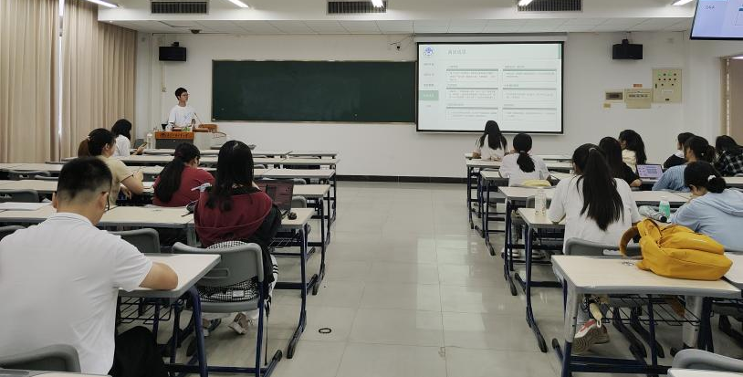 紧接着,学院“挑战杯”国赛队伍成员张宇对于“挑战杯”学术赛事做了简要介绍,号召更多的同学参与其中,他还从调研主题、调研方式、调研预案和调研成果四方面清晰梳理了队伍调研心得。他丰富的分享为同学们在实际调研中能及时发现问题、分析问题、解决问题提供了建设性的思考。