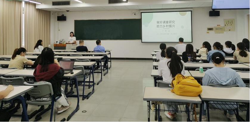 随后,罗晓婷就项目调研分享自身想法。她立足于调研全过程,从前期准备开始详细介绍了调研注意事项,并鼓励同学们踏实做好调研研究,助力乡村振兴。