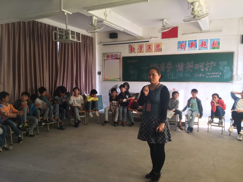随后,广东外语外贸大学后勤处翁主任发表言论。他向同学们介绍了更专业的性知识,包括具备怀孕条件的年龄、女性容易受孕的时期、女孩子的月经和男孩子的遗精,弥补了偏远地区学生在这“性”方面的知识欠缺。最后,岭背中学马老师作活动总结,本次防止性骚扰下乡宣传活动圆满结束。