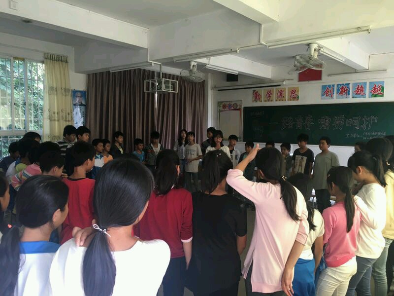 近年来,未成年人遭受性骚扰或性侵害的案件屡屡被媒体曝光,引起了社会的广泛关注。对此,公众不仅表达了对犯罪分子的强烈谴责,更为受害的未成年人深感痛心。未成年人是祖国的花朵,应当自身掌握一定的技能方法,学会保护自己,使自己远离“性骚扰”的侵害。因此,在相对比较偏远的地区宣传防止性骚扰和性侵的相关知识显得尤为重要。为了提高学生们的自我保护意识和能力,广东外语外贸大学后勤处计生办到清远市阳山县岭背中学开展“一路青春,需要呵护”的主题活动。本次活动有七年级共57个同学参加。