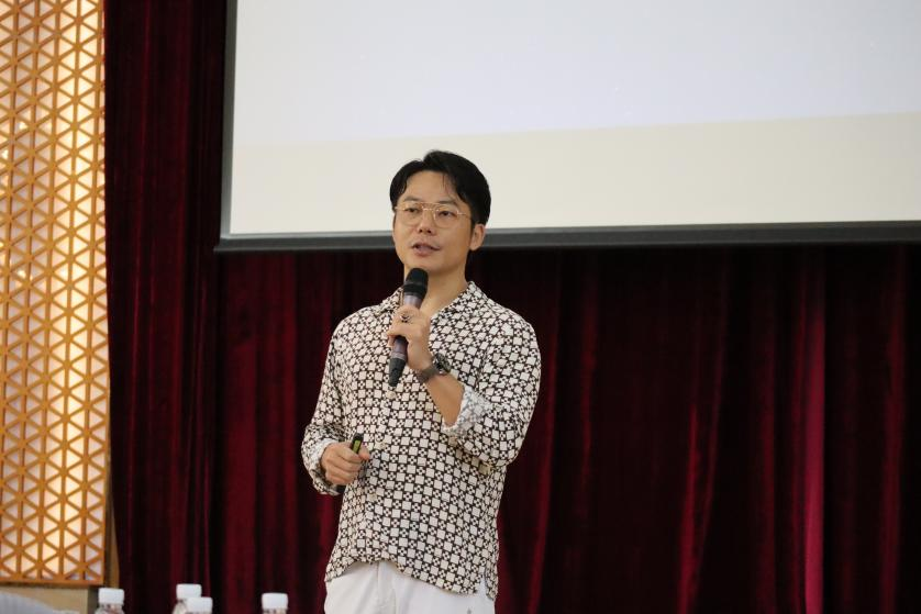 紧接着校友郭松还向新生们提出了以下几点建议。第一,需要注重能力模型的建设;第二,需要兼具系统性思维,培养自身全局观与大局意识;第三,重视组织协调能力的获得,对资源进行有效合理的分配;第四,提高自身行动力,及时调整状态;第五,大学阶段需要注重形神兼修。最后,郭松向新生们分享了企业经营天地图,多角度介绍了自身成功的经验。